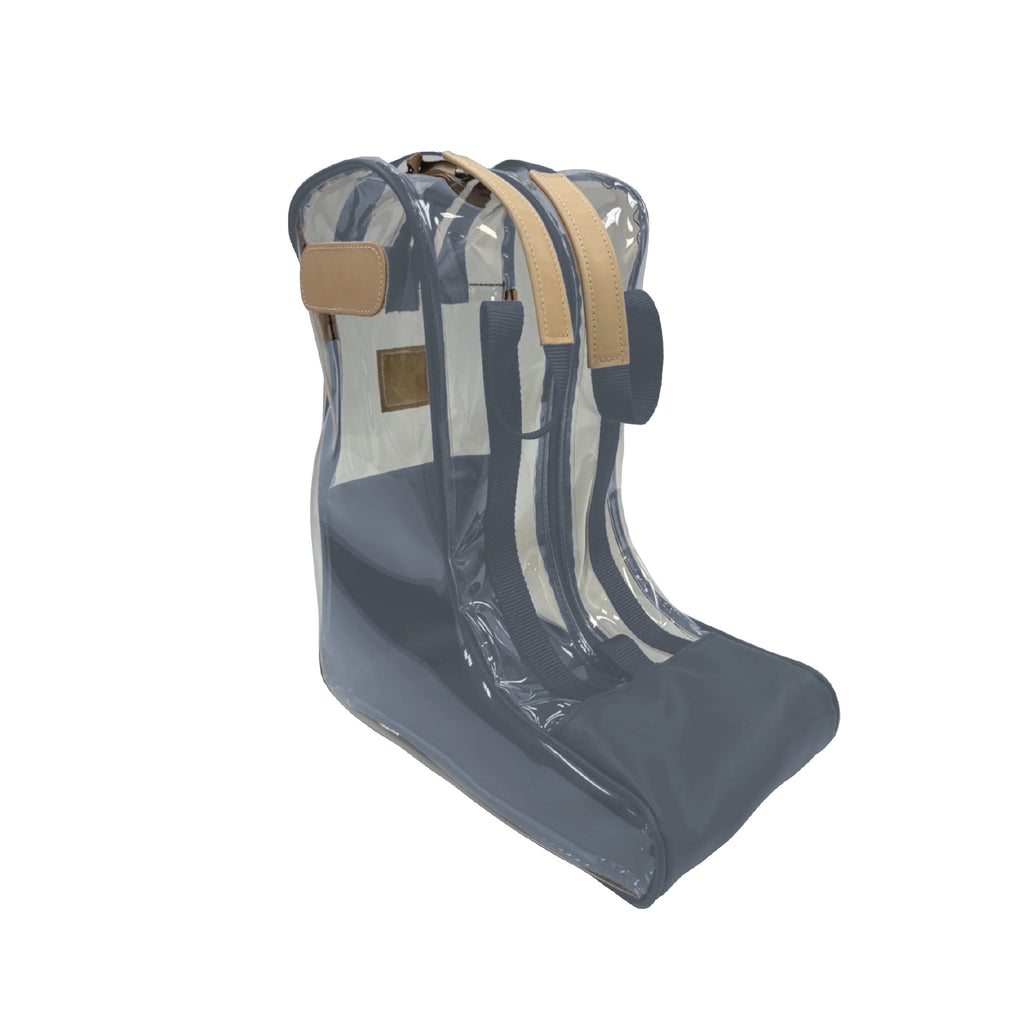 Coated canvas with Natural Leather trim. Holds up to a size 14 boot.