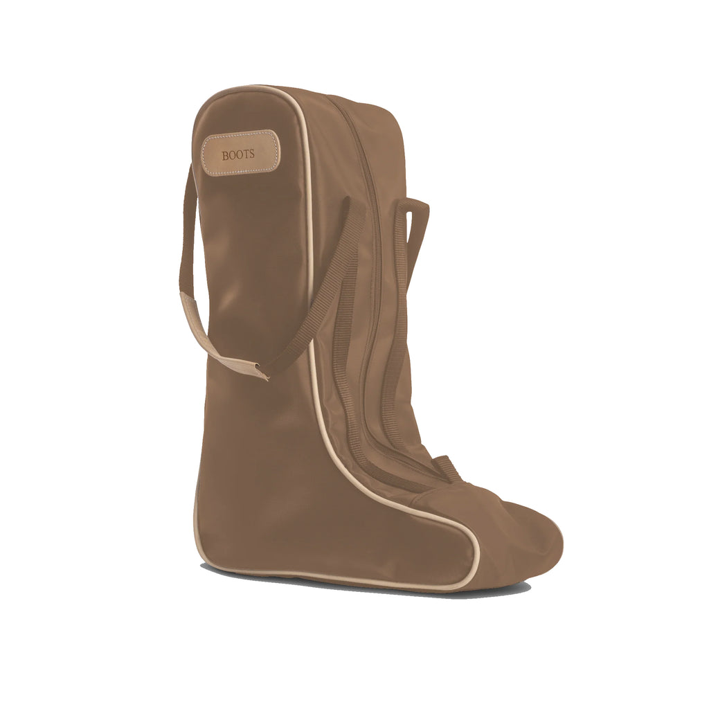 Coated canvas with Natural Leather trim. Holds up to a size 14 boot.